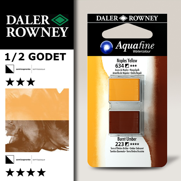 Acquerello Daler Rowney Aquafine – Set Duo Giallo di Napoli e Terra d’Ombra (634 – 223)