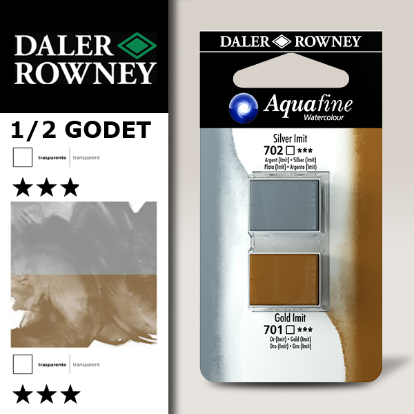 024 – 702 Argento imit. e 701 Oro imit. – Acquerello 1/2 Godet Aquafine Daler Rowney
