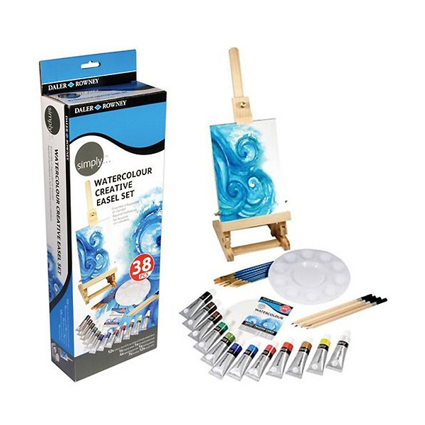Starter Kit Set Watercolours 12 Tubetti da 12 ML Acquerello + Pennelli + Cavalletto e Accessori Daler Rowney