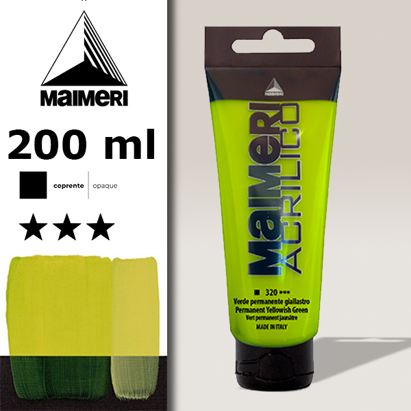 320 - Verde Permanente Giallastro 200 ML Acrilico Maimeri