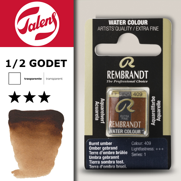 409 – Terra Ombra Bruciata Acquerello 1/2 Godet Rembrandt Aquarel Talens