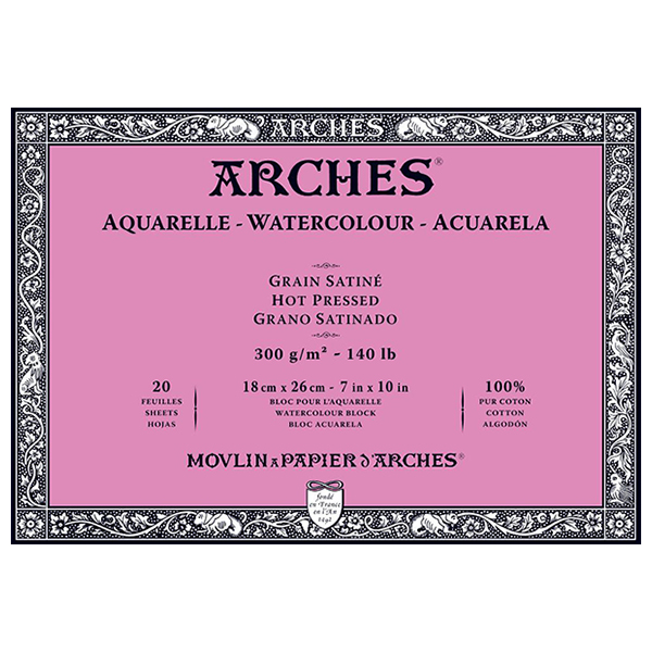 Blocco Aquarell Collato su 4 lati 20 fogli – 18 x 26 cm – Grana Satinata – 300 g/m² Arches