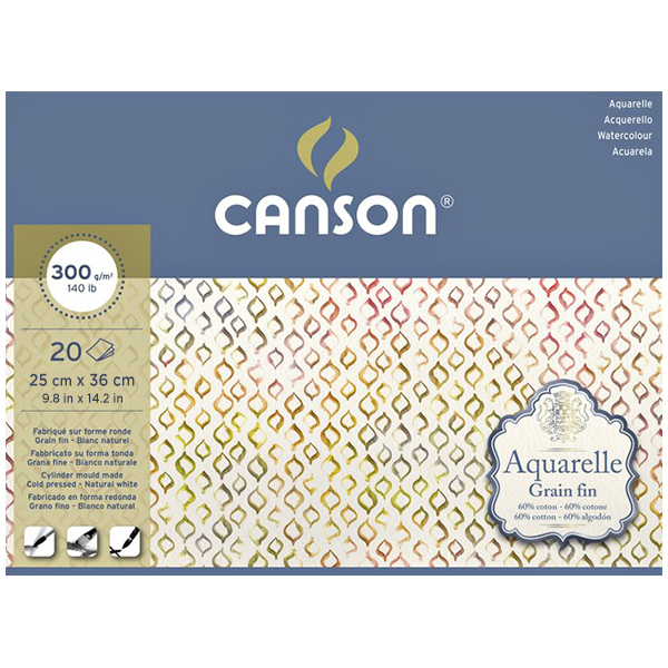 Blocco Canson L’Aquarelle – 25 x 36 cm, Grana Fine (12 Fogli)