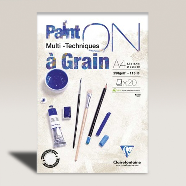 Clairefontaine Paint On à Grain – Blocco Multitecnico, A4, 20 Fogli, 250 gr