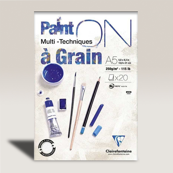 Blocco Multitecnico Paint On à Grain A5 Ruvido Fine Fogli 20 gr 250 Clairefontaine