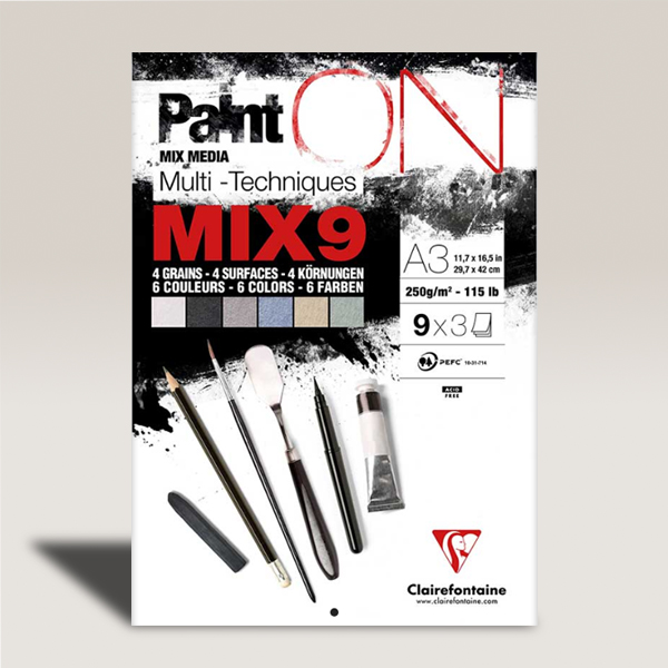 Clairefontaine Paint On Mix – Blocco 9 Colori Assortiti, A3, 27 Fogli, 250 gr