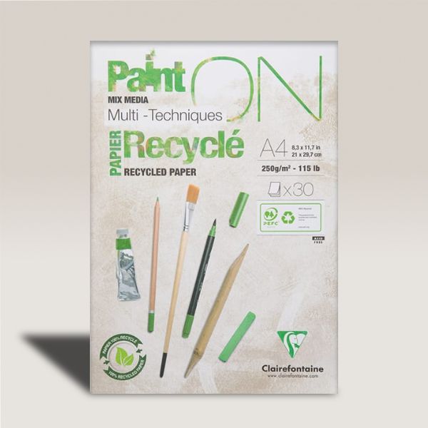 Clairefontaine Paint On Recyclé – Blocco Multitecnico, A4, 30 Fogli, 250 gr